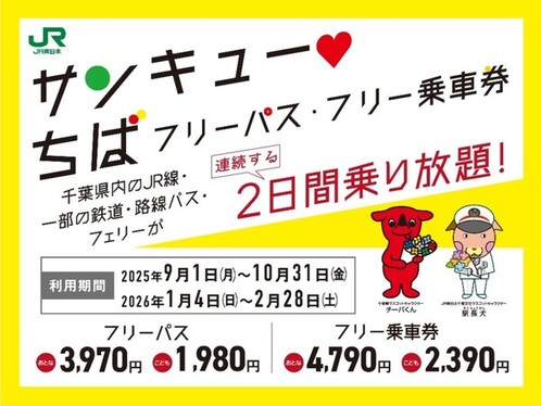 【千葉がお得!】サンキュー♡ちばフリーパス販売のお知らせ